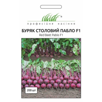 Буряк Пабло є середньораннім голландським гібридом з терміном дозрівання 90-110 днів. Висаджувати буряк можна у два оберти: перший раз у травні, другий - у червні. Також допускається висадка і в осінній період - в кінці жовтня або на початку листопада. Форма коренеплодів округла, діаметр 11-15 см, шкірка гладка, маса в середньому 220-450 грам. Зовнішня забарвлення темно-бордового, а внутрішня - насиченого темно-червоного кольору без світлих радіальних кілець. Гібрид Пабло досить стійкий до стрілкування та церкоспорозу. Використовують для продукції на пучок, вживання у свіжому вигляді, для переробки і для тривалого зберігання. Головною перевагою даного гібрида є висока морозостійкість. Надзвичайна урожайність даного гібриду і однорідність плодів зробили Пабло досить відомим серед фермерів, так і серед звичайних дрібних господарств. Врожайність в середньому становить 6,5-7,5 кілограм з квадратного метра.Вага: 400шт