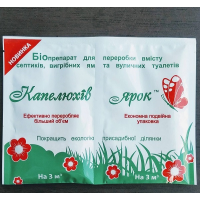 Біопрепарат «Капелюхів Ярок» призначений для зменшення органічних накопичень у вуличних туалетах, вигрібних ямах та септиках. Препарат Капелюхів Ярок усуває неприємні запахи та розкладає органічні відходи на воду та газ. Після внесення біоактиватора через 2-3 місяці відновлюється дренажна система, органічні залишки переробляються і залишається придатна рідина для добрива грунту. До складу препарату входять: штами живих мікроорганізмів (> 4 млрд в одному пакетику), рослинний носій у вигляді кукурудзяної січки, необхідні біогенні елементи. Витрата препарату: пакетик 20 г розрахований на 3 куб. метр відходів. Робочий розчин виготовляється з трьох літрів нехлорованої води і заливається безпосередньо в ємність септика або туалету, або через злив раковини або унітазу. Стрітова доза препарату (перше внесення) – 40 г на 3 л води. Препарат необхідно вносити лише у вологе середовище за температури від +4 град. З до +40 град. З. Використання побутової хімії зменшує ефективність препарату. При попаданні до стічного резервуару неорганічних препаратів дозу препарату необхідно збільшити вдвічі. Agrosemka Продаж насіння, засобів захисту рослин та добрив для приватного господарства Топ продажу #01 Насіння рослин Чому ми? #02 Хороші засоби для захисту рослин, які будуть працювати 100% ефективно Добрива які можна вибрати відповідно до потреб вашого врожаю Великий вибір субстратів та грунтів для різноманітниз кімнатних рослин та міні-городів Широкий вибір якісного та надійного садового інвентаря від шлангів до сікаторів Отзывы о нас #03 А ще дуже швидко реагують на забаганки замовника... Щире дякую за таку працю, та ще й в воєнний час! Користуюсь послугами продавця вже третій рік підряд. Все добре,без зауважень. Рекомендую! Заказ отправили быстро. Посылочка приехала в целости и сохранности. Товар соответствует описанию. Огромное спасибо за оперативность! Рекомендую! Як ми працюємо? #04 Залишіть заявку на сайті або зв“яжіться з нами за вказаними телефонами Задайте питання менеджеру, та погодьте з ним деталі Оплата можлива готівкою при отриманні або передоплата Доставляємо перевізниками по всій Україні